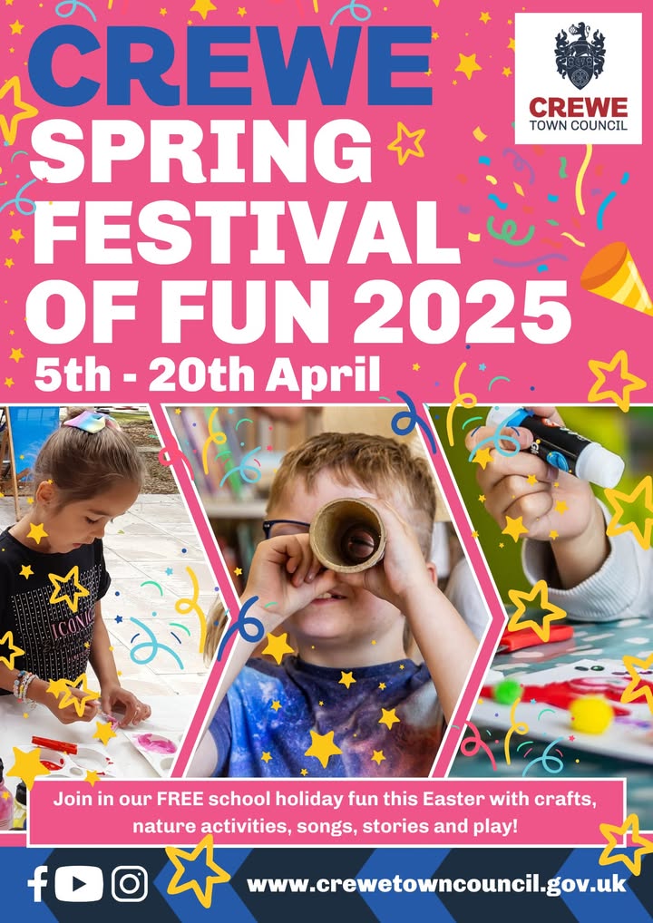#CreweCentral #EasterInCrewe #CreweEvents #FamilyFun #CreweMarketHall #QueensParkCrewe #CllrRogerMorris